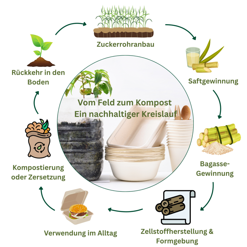 Lebenszyklus von Zuckerrohr-Bagasse-Verpackungen: Vom Feld zum Kompost