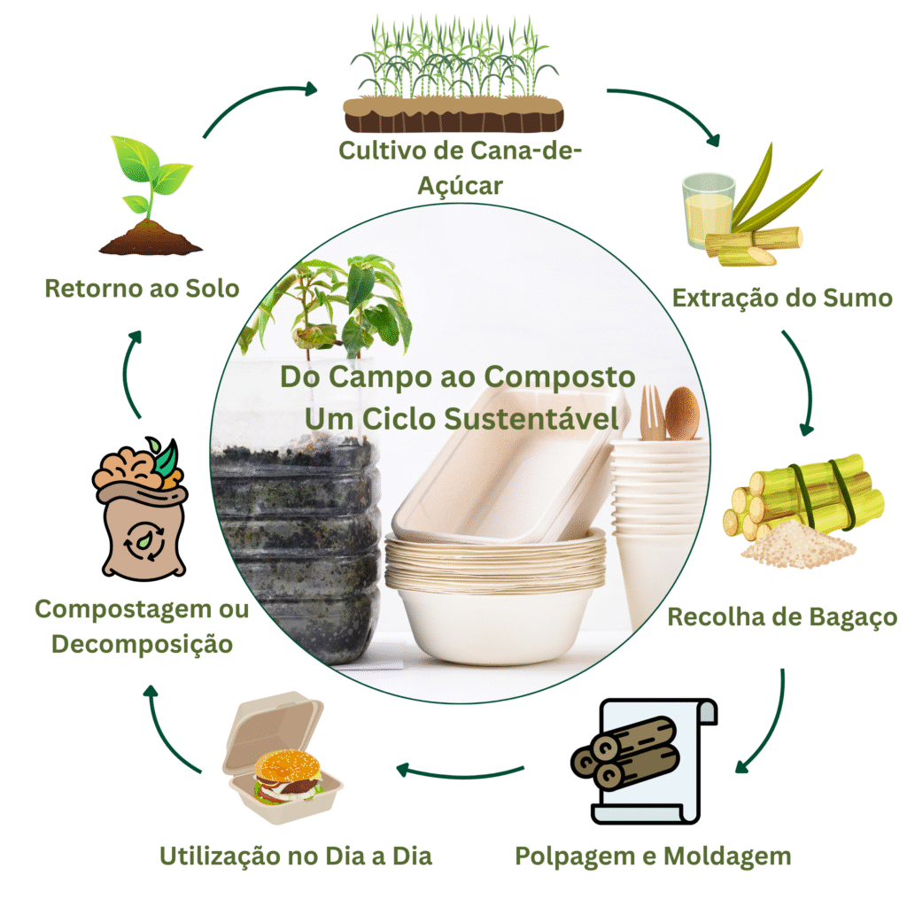 Ciclo de Vida da Embalagem de Bagaço de Cana-de-Açúcar: do campo ao composto.